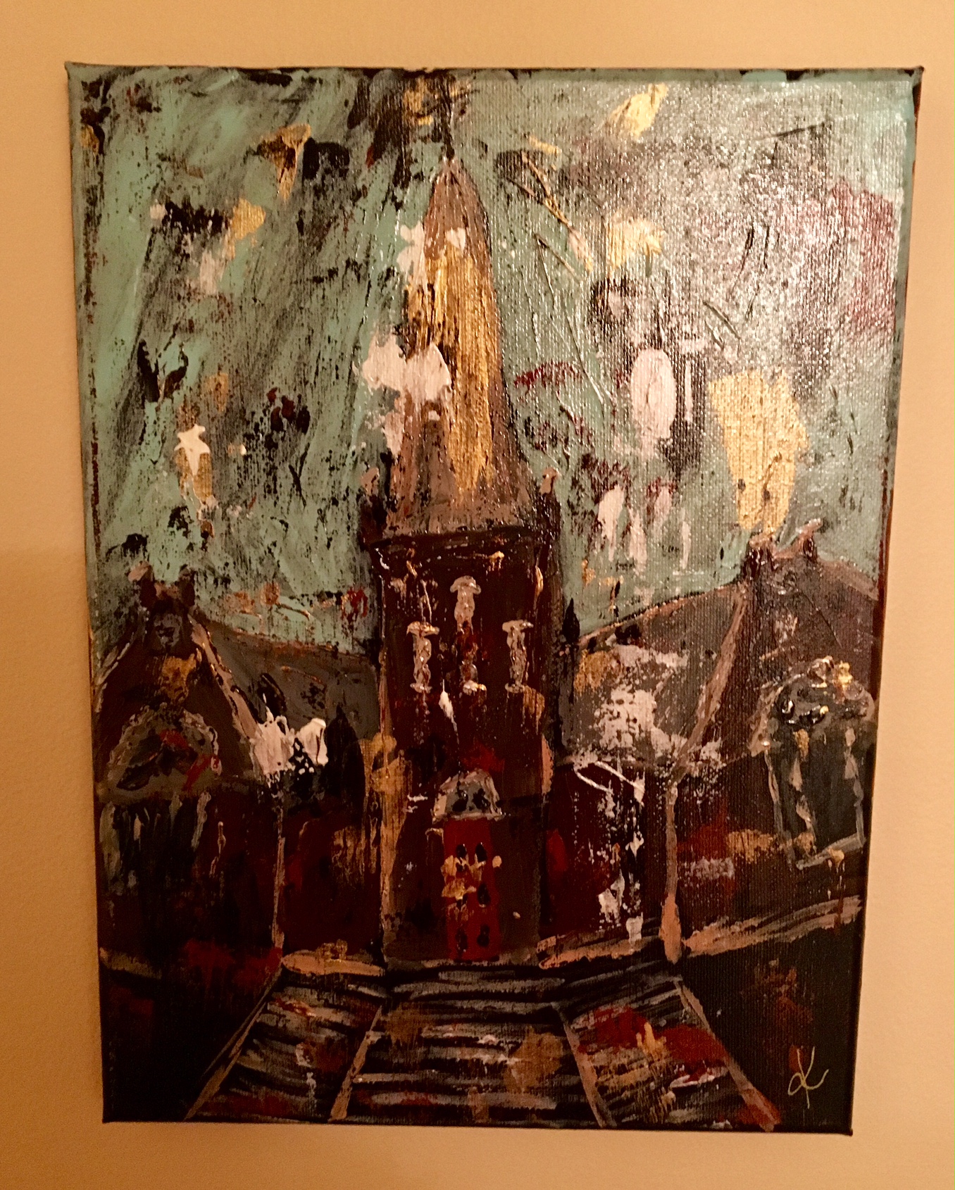I am starting a new job in a near-by town. A precious friend is opening an antique store and I have the beautiful blessing of being able to display my art there. She sent me several pictures of the historic churches in her area and asked me to pray and paint my interpretation of these houses. So far, I have only finished 3 of the 6 churches, but I have been praying circles around them all.